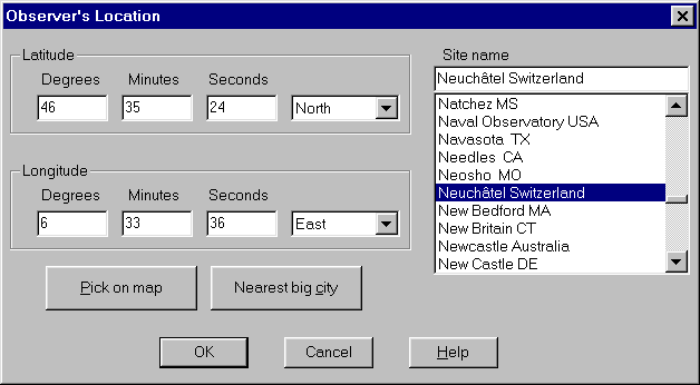 Release 3.3a of Home Planet, a comprehensive astronomy / space / satellite-tracking package for Microsoft Windows 95/98/Me and Windows NT 4.0/2000/XP and above, is now available; see details at the end on how to download and install the software. Release 3.3a of Home Planet is a native 32-bit Windows application which cannot be used on Windows 3.1; if you have such a system, download Home Planet Release 2, which remains available.