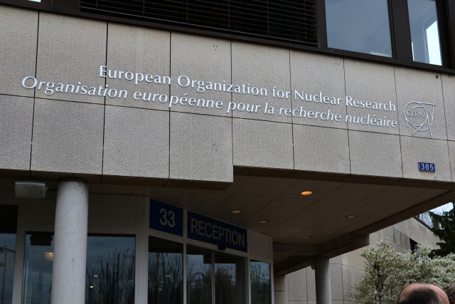 Our group met outside the CERN headquarters building, waiting to board a CERN shuttle bus to see the first of the Large Hadron Collider (LHC) detector experiments we were to visit. “CERN” is an acronym of “Conseil Européen pour la Recherche Nucléaire (European Council for Nuclear Research), which organised the laboratory between 1952 and 1954. The official name of the organisation, as it appears on the building, is “Organisation européenne pour la recherche nucléaire (European Organization for Nuclear Research). The acronym “CERN” was retained, both for historical reasons and the fact that acronyms of the official name are awkward in both French and English.
