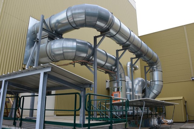 Hats on! We wait for the elevator to take us down into the detector cavern. The cavern is 100 metres below the surface, so the elevator ride takes a while. This is one of the few places on Earth where people are counseled that in case of fire or release of nitrogen or helium (both of which are nontoxic but will cause asphyxiation by displacing breathable oxygen) to take the elevator to escape. The elevator is equipped with a positive pressure system for such emergencies. There is an emergency stairway, but the chance of escaping a major asphyxiation event by climbing the height of a thirty storey building would be nil without an auxiliary oxygen supply. Workers in the detector halls and tunnel carry an emergency breathing pack, but it is intended only to allow them to get to the elevator.